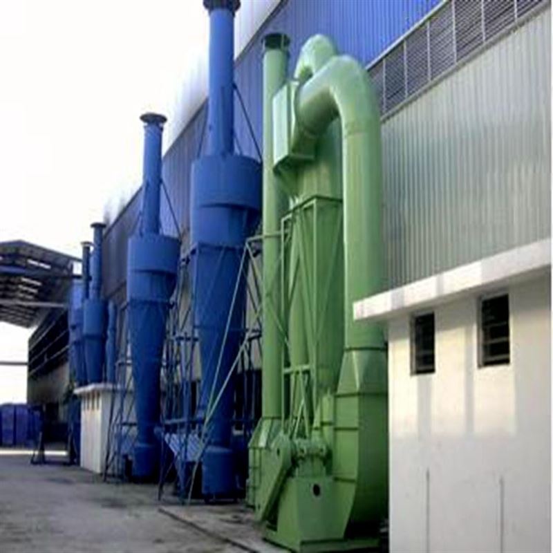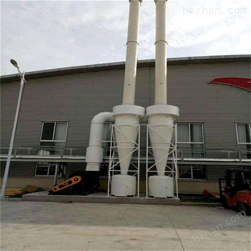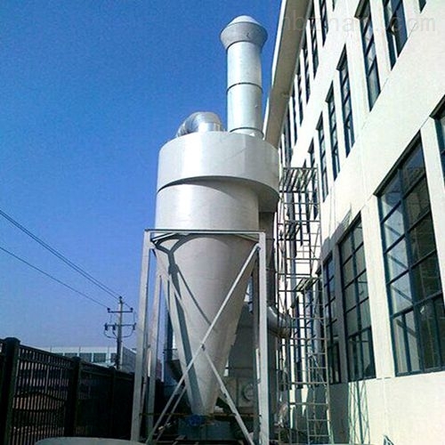 旋风除尘器  是由进气管、排气管、圆筒体、圆锥体和灰斗组成。旋风除尘器结构简单,易于制造、安装和维护管理,设备投资和操作费用都较低,已广泛用于从气流中分离固体和液体粒子,或从液体中分离固体粒子。在普通操作条件下,作用于粒子上的离心力是重力的5~2500倍,所以旋风除尘器的效率显著高于重力沉降室。利用这一个原理基础成功研究出了一款除尘效率为百分之九十以上的旋风除尘装置。在机械式除尘器中,旋风式除尘器是效率较高的一种。它适用于非黏性及非纤维性粉尘的去除,大多用来去除5μm以上的粒子,并联的多管旋风除尘器装置对3μm的粒子也具有80~85%的除尘效率。选用耐高温、耐磨蚀和腐蚀的特种金属或陶瓷材料构造的旋风除尘器,可在温度高达1000℃,压力达500×105Pa的条件下操作。从技术、经济诸方面考虑旋风除尘器压力损失控制范围一般为500~2000Pa。因此,它属于中效除尘器,且可用于高温烟气的净化,是应用广泛的一种除尘器,多应用于锅炉烟气除尘、多级除尘及预除尘。